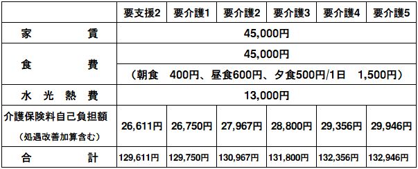 *日用品費:実費(リネン代、入浴物品、ティッシュペーパー、洗濯洗剤等)